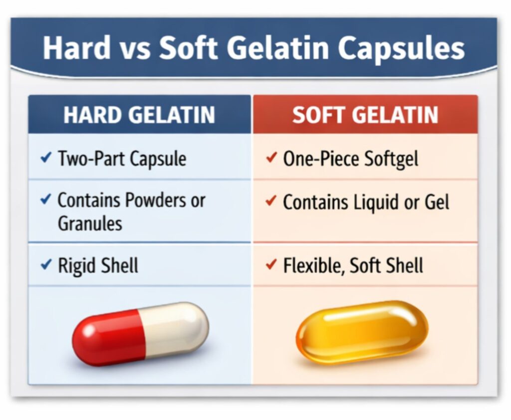 What is the difference between hard gelatin and soft gelatin capsules?