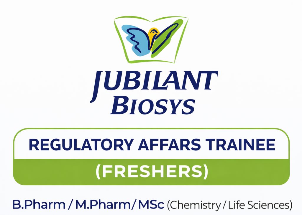 The pharmaceutical industry continues to offer promising career paths, especially in Regulatory Affairs (RA), a field critical for global drug approvals. Jubilant Generics Limited is currently hiring for the position of Research Trainee – Regulatory Affairs at its advanced facility in Greater Noida. This is an excellent opportunity for B.Pharm, M.Pharm, and MSc graduates who want to build a strong foundation in regulatory submissions, dossier preparation, and global compliance standards. Job Overview • Position: Research Trainee – Regulatory Affairs• Location: Greater Noida• Department: Regulatory Affairs• Experience: Freshers / Entry-Level This role is ideal for candidates looking to enter the regulatory domain and gain exposure to international guidelines and pharmaceutical documentation systems. Key Responsibilities As a Regulatory Affairs Trainee, you will be involved in essential activities related to drug approval and compliance:• Assist in regulatory documentation and submissions• Support dossier preparation (CTD/eCTD basics)• Learn and apply global regulatory guidelines such as US Food and Drug Administration and European Medicines Agency• Coordinate with R&D, QA, and cross-functional teams• Ensure proper maintenance of regulatory records and documentation• Gain understanding of lifecycle management of pharmaceutical products Qualifications Required Candidates applying for this role should meet the following criteria:• Educational Qualification:• B.Pharm / M.Pharm / MSc (Chemistry / Life Sciences)• Skills & Knowledge:• Basic understanding of cGMP and GLP guidelines• Interest in regulatory frameworks and drug approval processes• Good documentation and communication skills Freshers are highly encouraged to apply, making this a great entry point into the pharma industry. Salary & Benefits (Estimated) • Salary Range: ₹2 – ₹3.5 LPA Additional Benefits:• Work in a USFDA-approved facility• Exposure to global regulatory audits and submissions• Hands-on experience with CTD/eCTD dossiers• Opportunity for career growth in Regulatory Affairs• Structured training and learning environment Why Choose a Career in Regulatory Affairs? Regulatory Affairs is one of the most in-demand fields in pharma, bridging science and compliance. Working with a reputed company like Jubilant Generics Limited gives you:• Exposure to international markets (US, EU, Japan)• Strong foundation in global drug regulations• Long-term career stability and growth• Opportunities in dossier management, submissions, and strategy Final Thoughts If you’re a fresher aiming to enter the pharmaceutical industry, the Regulatory Affairs Trainee role at Jubilant Generics Limited is a valuable opportunity. With hands on exposure to global regulatory systems and industry-standard practices, this role can set the foundation for a successful career in Regulatory Affairs. How to Apply Application Link For Research Trainee – Regulatory Affairs Post navigation Latest Pharmacovigilance Jobs for Freshers | Medical Information & Drug Safety Careers Pfizer Hiring Safety Data Management Associate | Freshers & Experienced