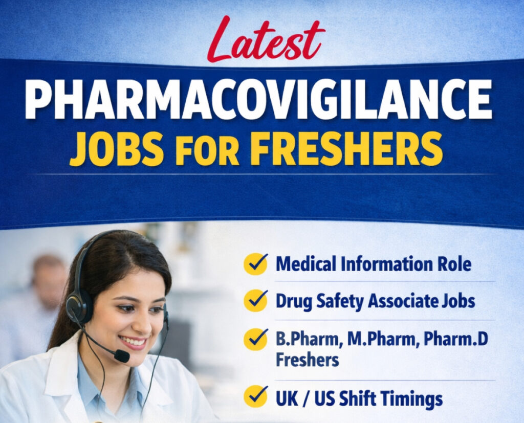 Careers in pharmacovigilance and medical information are expanding quickly within the pharmaceutical and life sciences sector. A new opening is currently available in Hyderabad for Medical Information Contact Centre professionals, offering fresh graduates an opportunity to begin their careers in drug safety and pharmacovigilance. This role mainly involves managing medical inquiries, handling adverse event reports, addressing product complaints, and ensuring proper patient safety communication. Candidates who are interested in building a career in Medical Information, Pharmacovigilance (PV), Drug Safety, or Medical Communication are encouraged to apply. The job requires working in UK/US shifts, where professionals interact with healthcare providers, patients, and consumers while ensuring accurate documentation and compliance with Good Pharmacovigilance Practices (GVP). This position is especially suitable for individuals searching for entry-level pharmacovigilance jobs in Hyderabad, medical information specialist roles, or drug safety associate opportunities. Key Responsibilities Selected candidates for the Medical Information and Pharmacovigilance role will be responsible for the following tasks: Adverse Event & Product Complaint Management• Handle incoming and outgoing calls and emails related to adverse events (AEs), product complaints (PCs), and medical information queries.• Process different types of safety reports such as:• Adverse drug reactions• Medication errors• Product quality complaints• Other special safety cases. Medical Information Support• Respond to online medical information requests received from healthcare professionals and consumers within the required timelines.• Provide accurate responses in accordance with medical information SOPs and pharmacovigilance guidelines. Safety Documentation & Reporting• Record and maintain call details while following Good Pharmacovigilance Practices (GVP).• Ensure proper documentation of adverse events and safety case intake processes. Customer Communication• Conduct follow-ups with patients, healthcare professionals, or consumers as per company procedures.• Address customer concerns and resolve complaints related to pharmaceutical products. Compliance & Operational Support• Maintain operational trackers, dashboards, and reports.• Identify potential drug safety issues and escalate them when required.• Participate in client discussions, internal audits, and compliance activities.• Support the development of SOPs, training materials, workflows, and documentation Eligibility Criteria Candidates applying for this pharmacovigilance and medical information role in Hyderabad should meet the following requirements: Educational Qualification Preferred degrees include:• B.Pharm• M.Pharm• Pharm.D• BSc / MSc in Life Sciences Experience• Freshers and entry-level candidates are welcome to apply.• Previous exposure to pharmacovigilance, medical information, or drug safety operations will be considered an advantage. Required Skills• Basic understanding of Adverse Event (AE) reporting• Knowledge of product complaint management• Familiarity with Good Pharmacovigilance Practices (GVP)• Strong communication and customer interaction skills• Willingness to work in UK/US shifts• Ability to follow SOP-based processes How to Apply Interested candidates can apply for this Medical Information / Pharmacovigilance position in Hyderabad by sending their updated resume to: Dev.kiran@arcolab.com Applicants should include:• Updated CV/Resume• Any relevant pharmacovigilance or medical information experience• Contact details for further communication. Post navigation Freshers Job Opening 2026: Regulatory Affairs Trainee Role